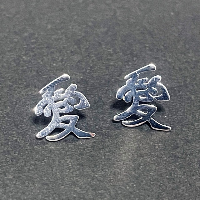 ピアス 愛 漢字 LOVE 鏡面 シルバー ユニセック アクセサリー