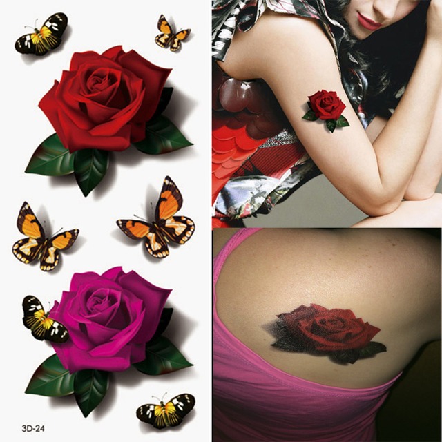 タトゥーシール 防水 3D 薔薇 バラ 花 ローズ バタフライ 蝶 オマケ付