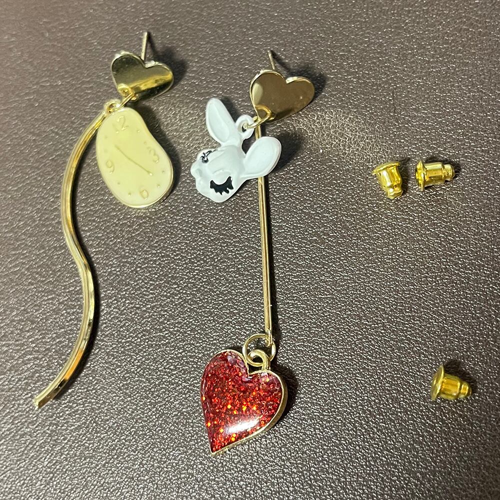 ピアス イヤリング うさぎ ハート 時計 アシメ かわいい 不思議 兎 白うさぎ 懐中時計 ワンダー