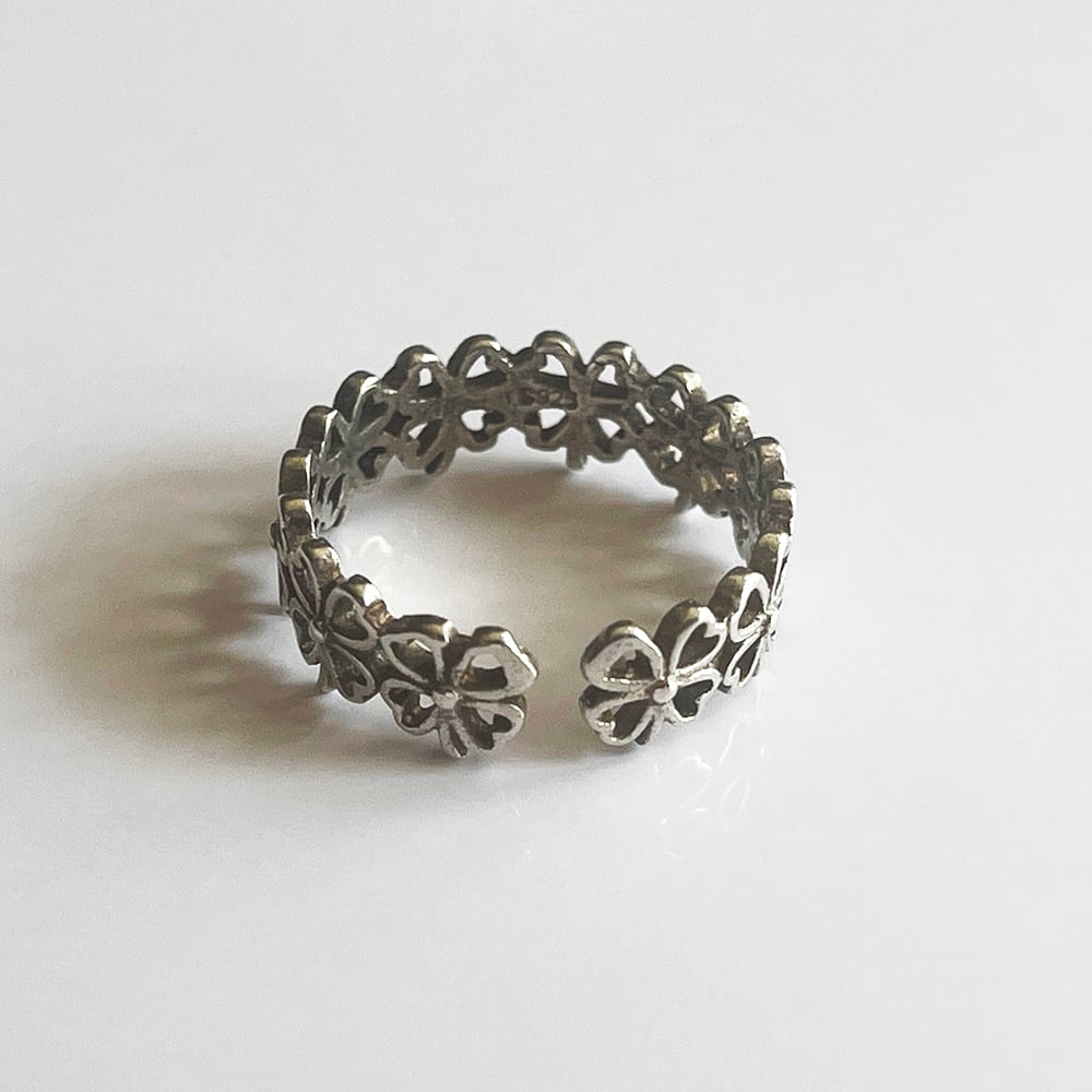 大人可愛い四つ葉のクローバーが連なったデザインのリングです♪