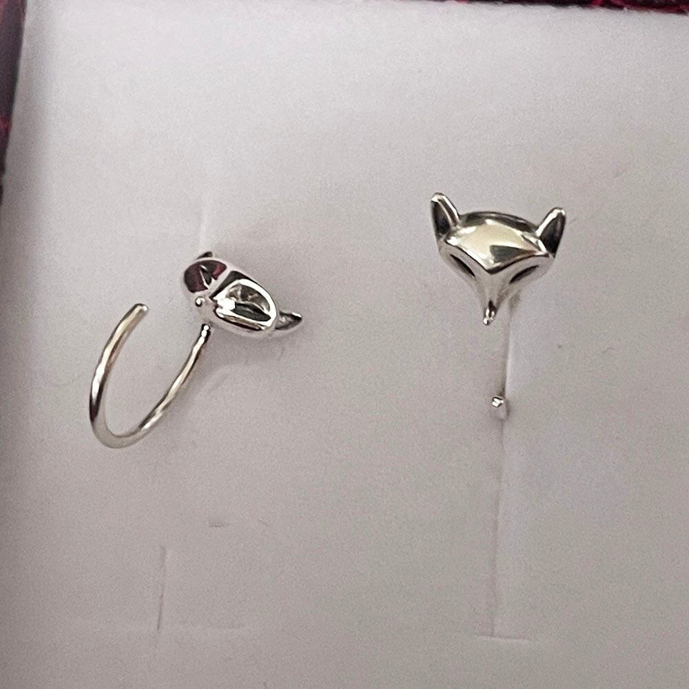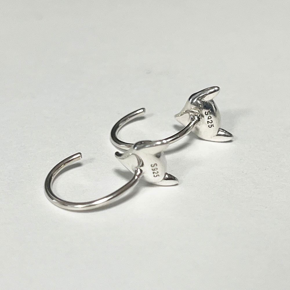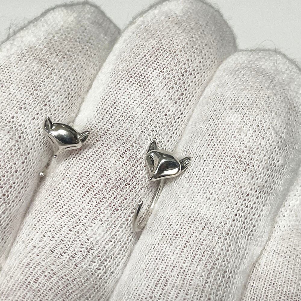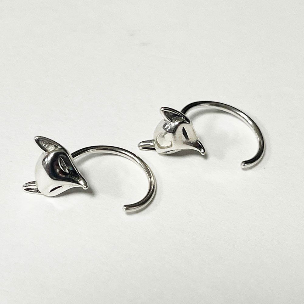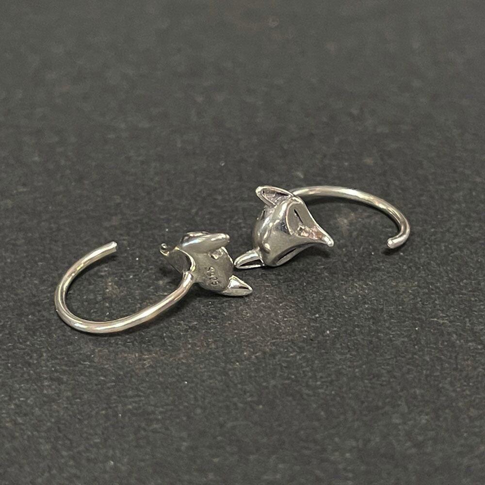 可愛い銀狐モチーフにしたシルバーのフックピアスです