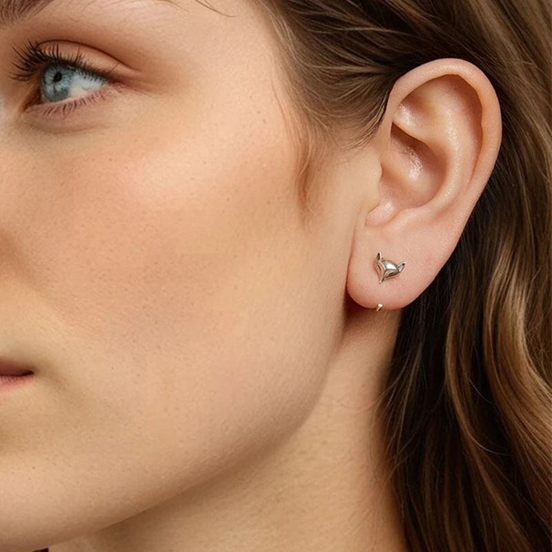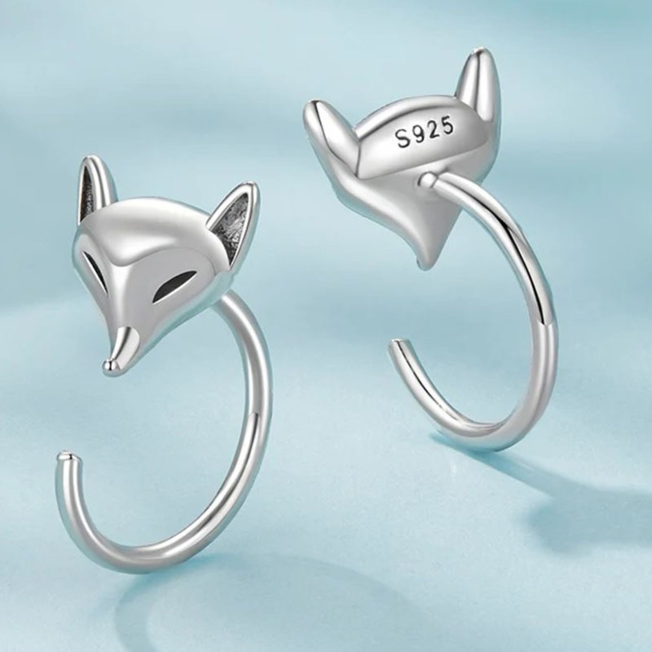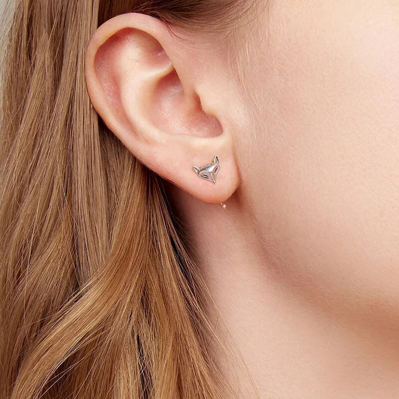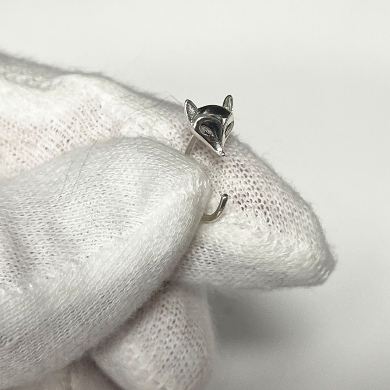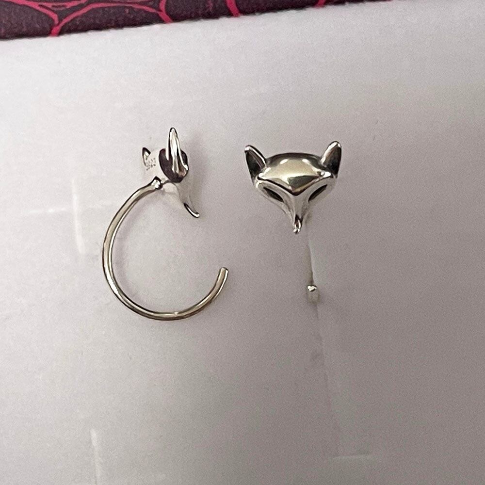可愛い銀狐モチーフにしたシルバーのフックピアスです