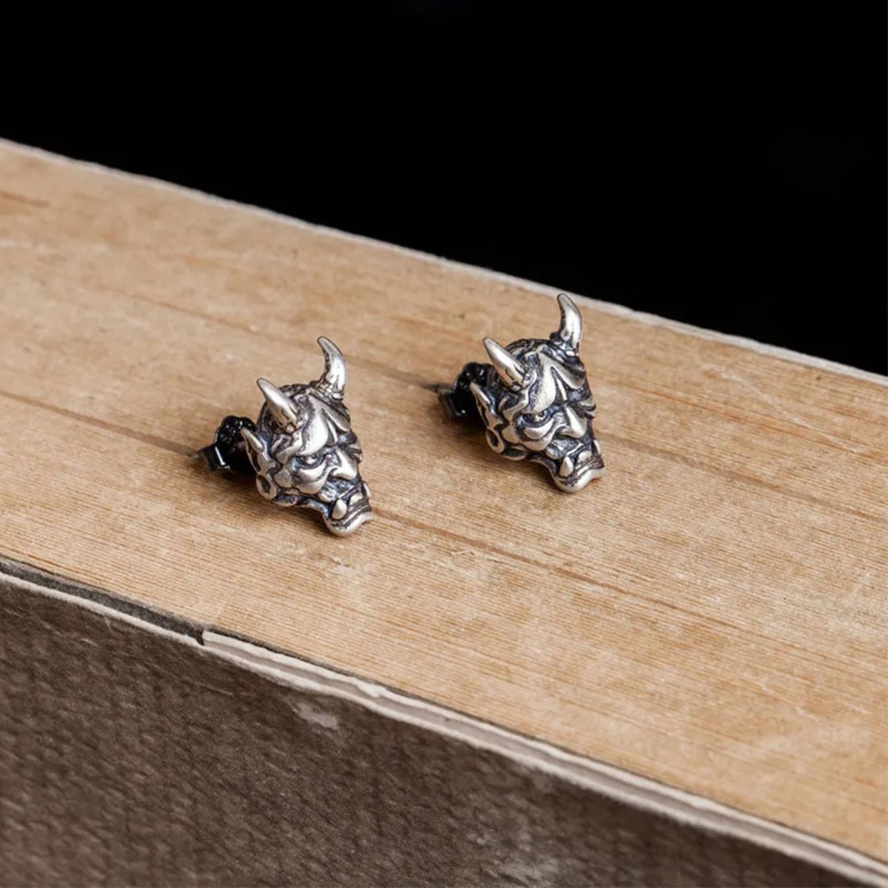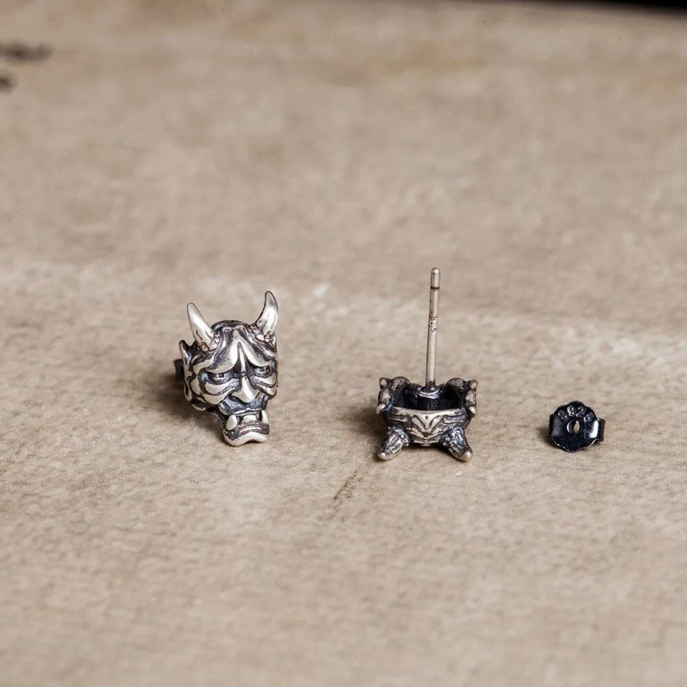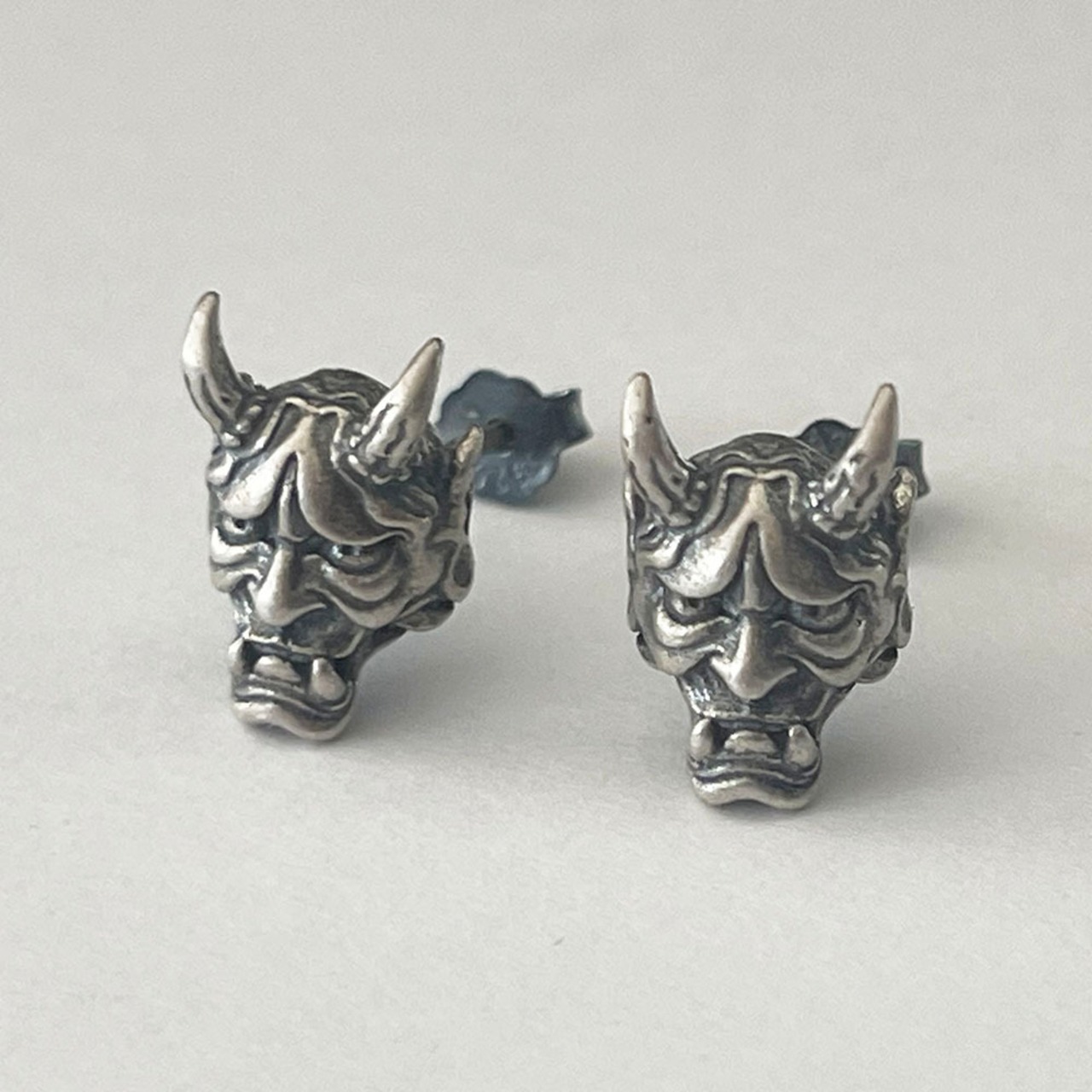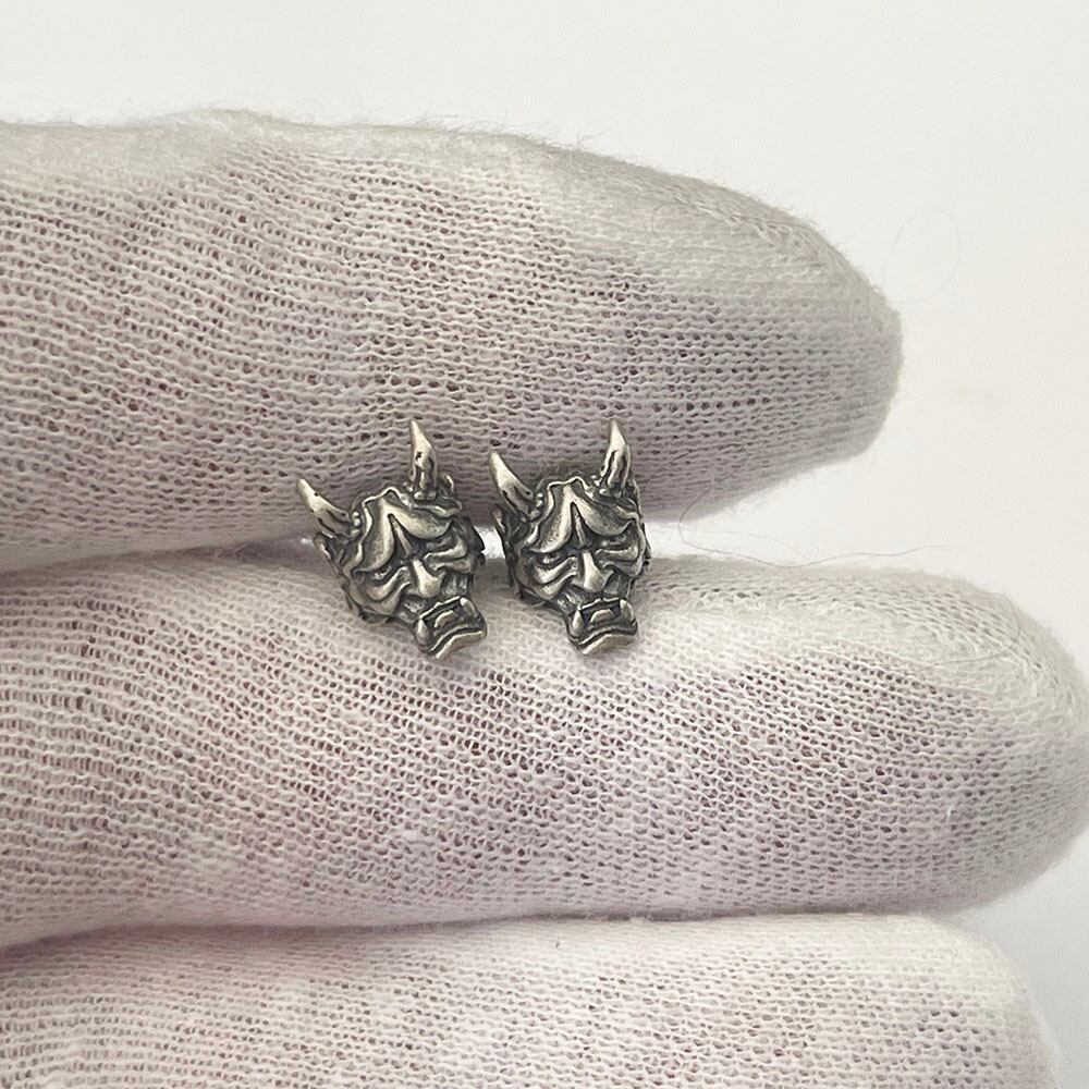 とてもリアルなインパクトがある般若をモチーフにしたシルバーピアスです