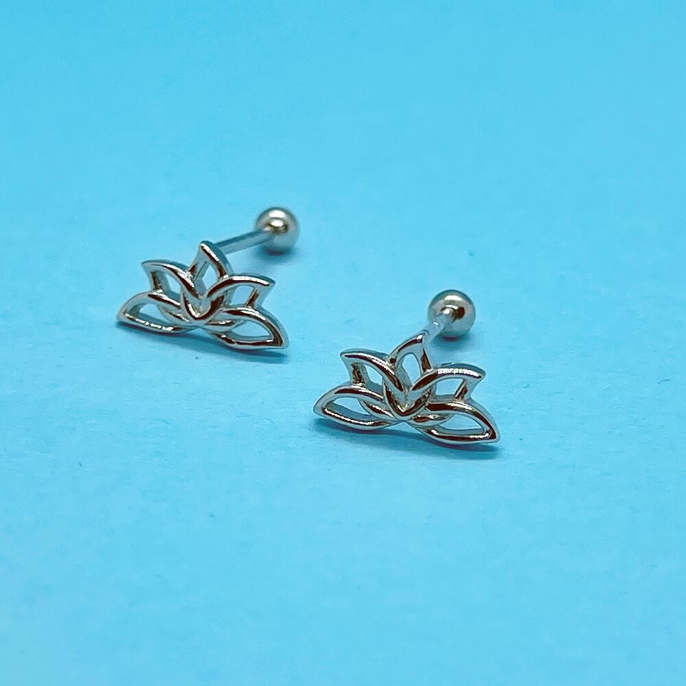 ピアス S925 シルバー 蓮 蓮の花 蓮花 蓮華 ロータス 透かし レディース Silver アクセサリー