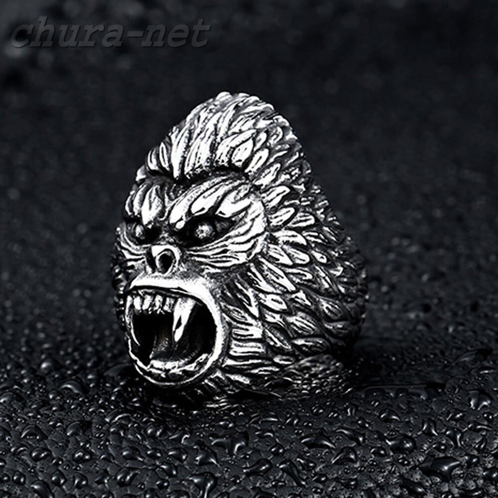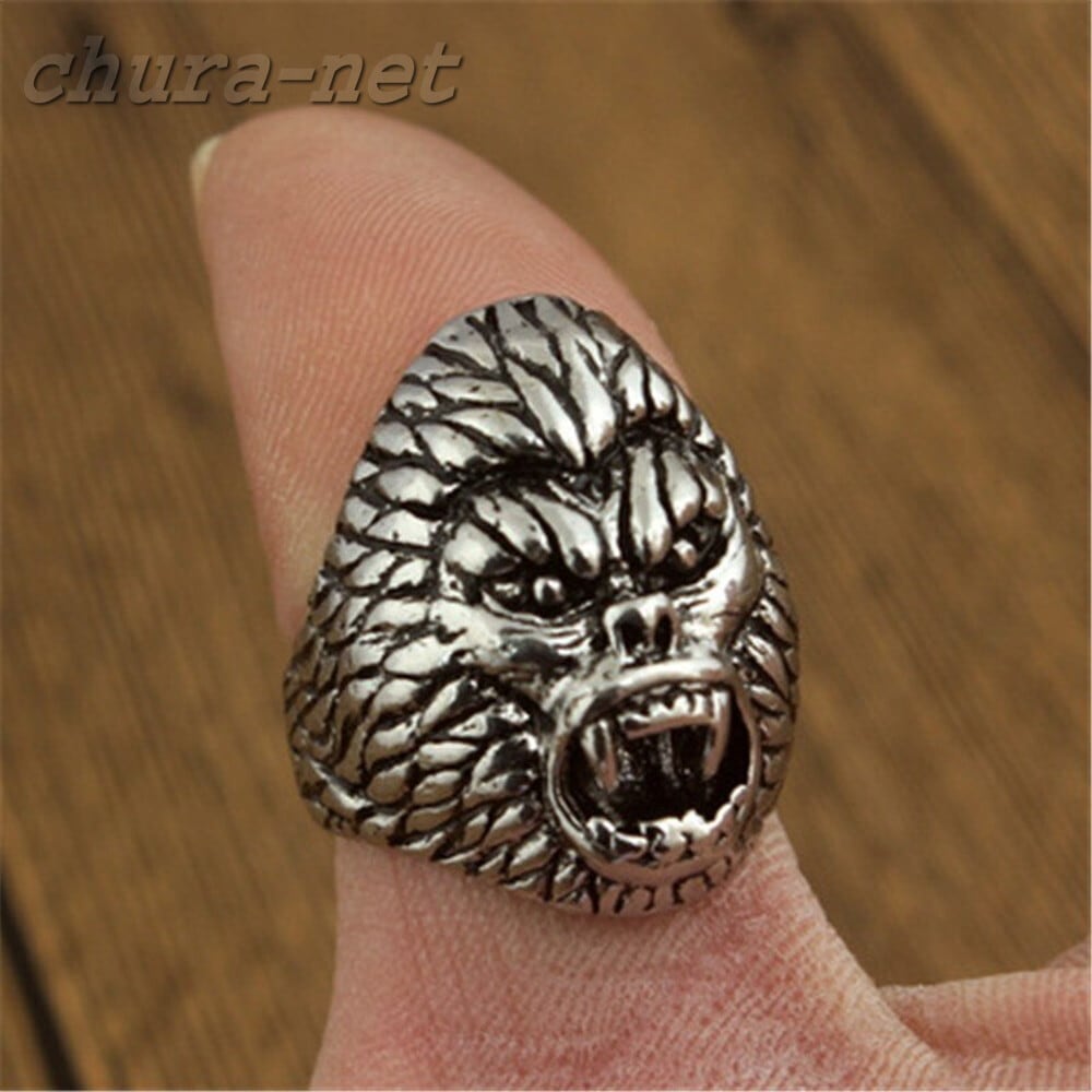 リング 指輪 メンズ ゴリラ ゴリラフェイス 顔 動物 アニマル アンティーク シルバー アクセサリー リアル