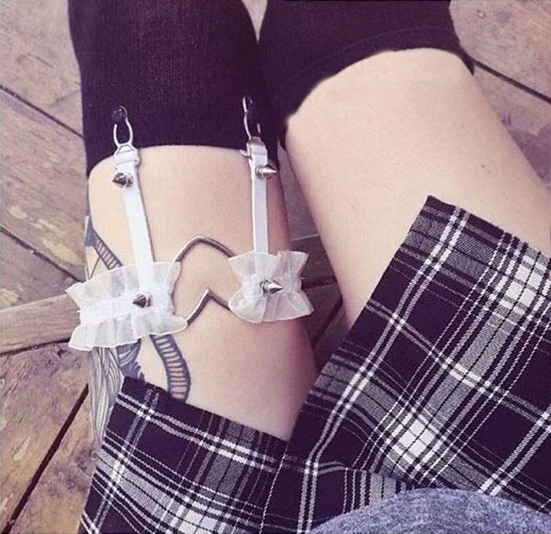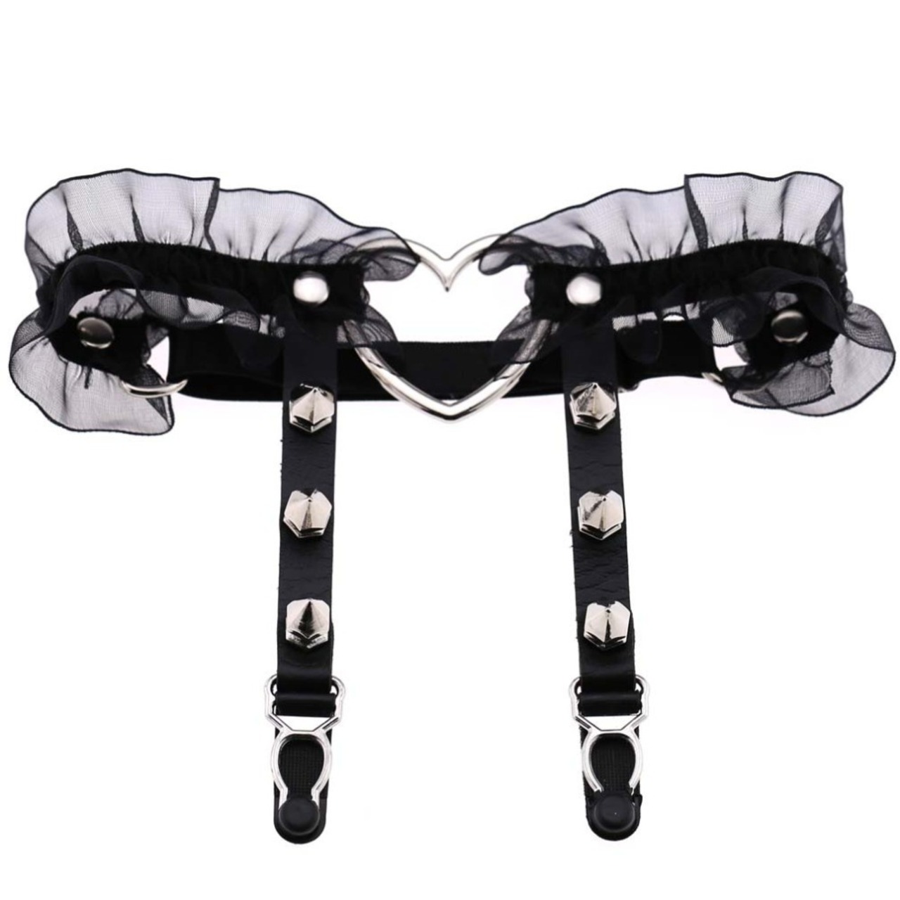ガーターベルト 革 レザー ハート ハートリング レース スパイク スタッド ニーハイ ガーターリング コスプレ ハイソックス ストッキング ソックス ゴスロリ セクシー パンク ロック ゴシック サスペンダー V系 ゴスロリ ヴィジュアル系 ダンサー ステージ イベント ランジェリー レディース 衣装 セット ストッキング 足ベルト 鋲 ボンデージ
