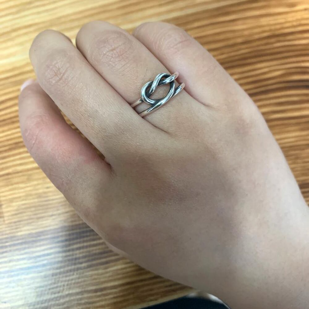 シルバーのダブルラインに結んだようなハート形が可愛いリング