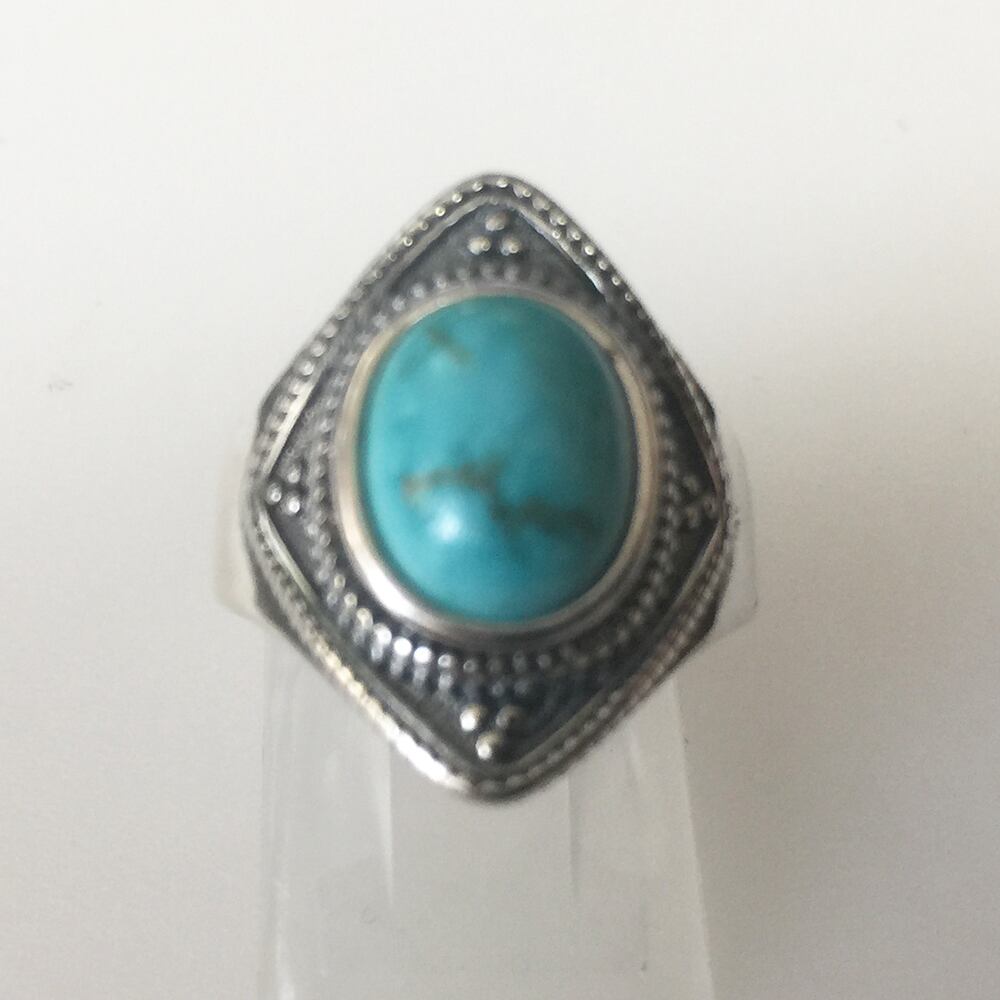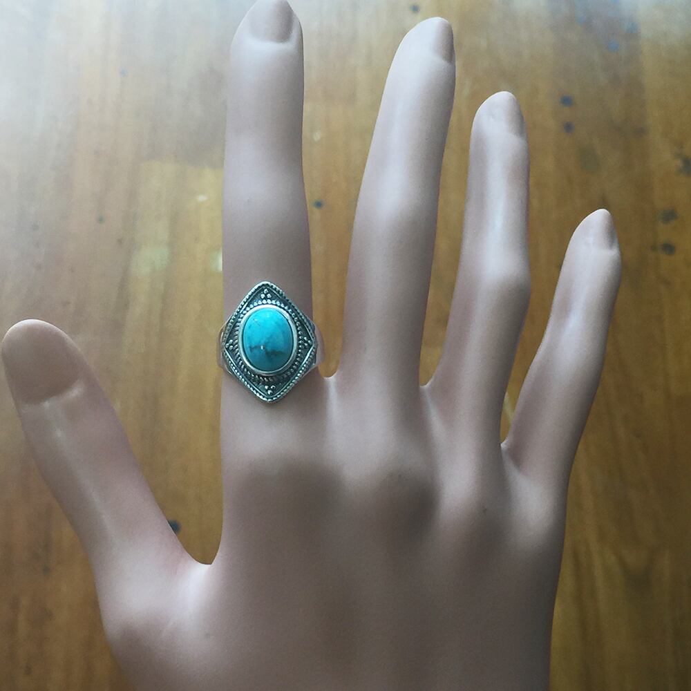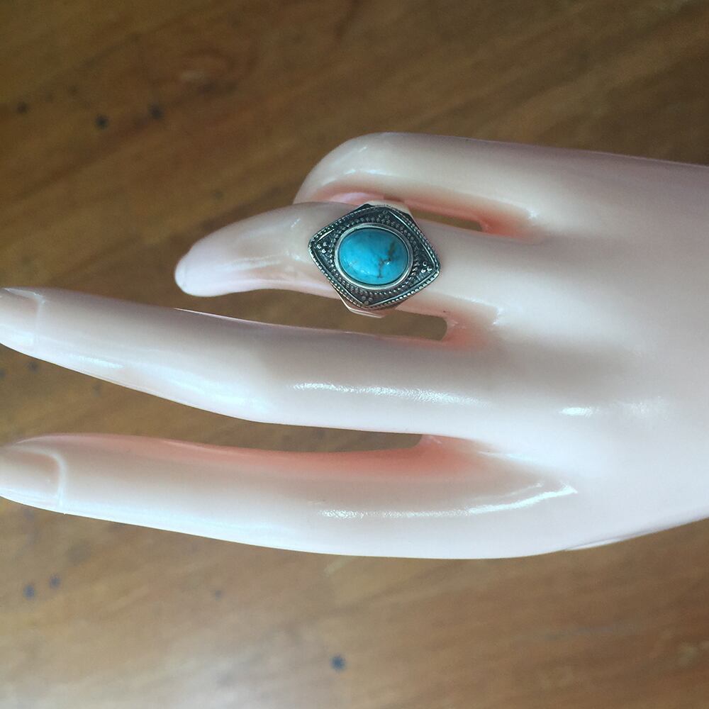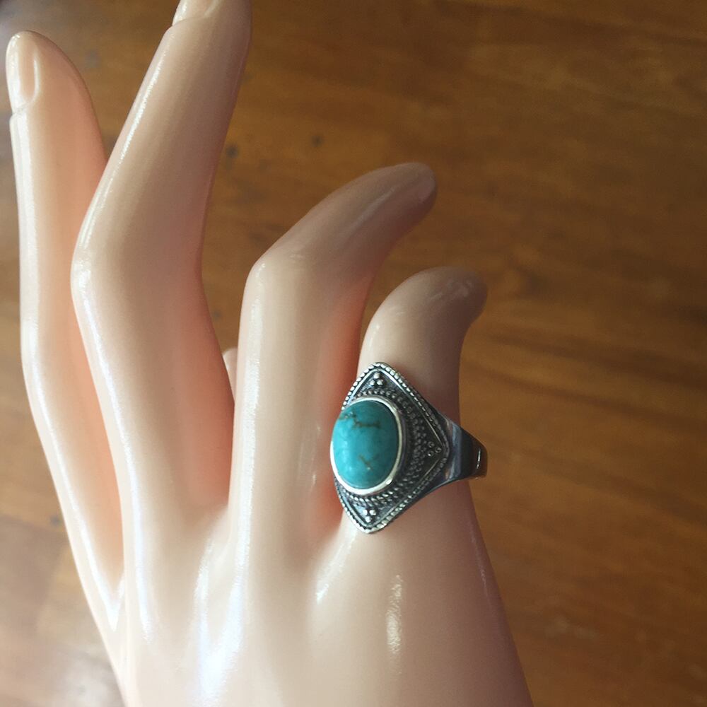 リング 指輪 ターコイズ レディース トルコ石 ネイティブ アンティーク シルバー 925 菱形 ヴィンテージ調 オーバル アクセサリー ジュエリー