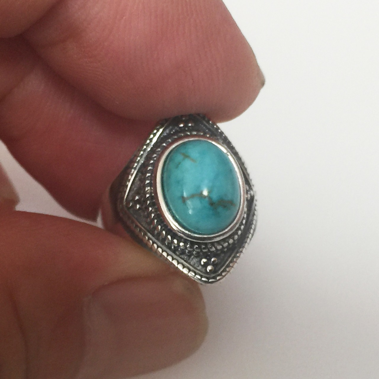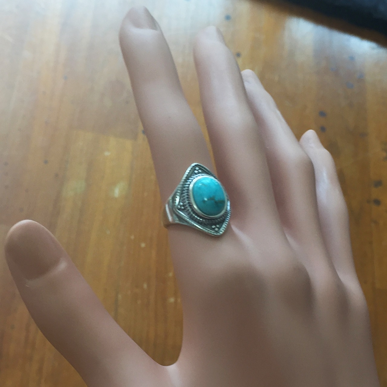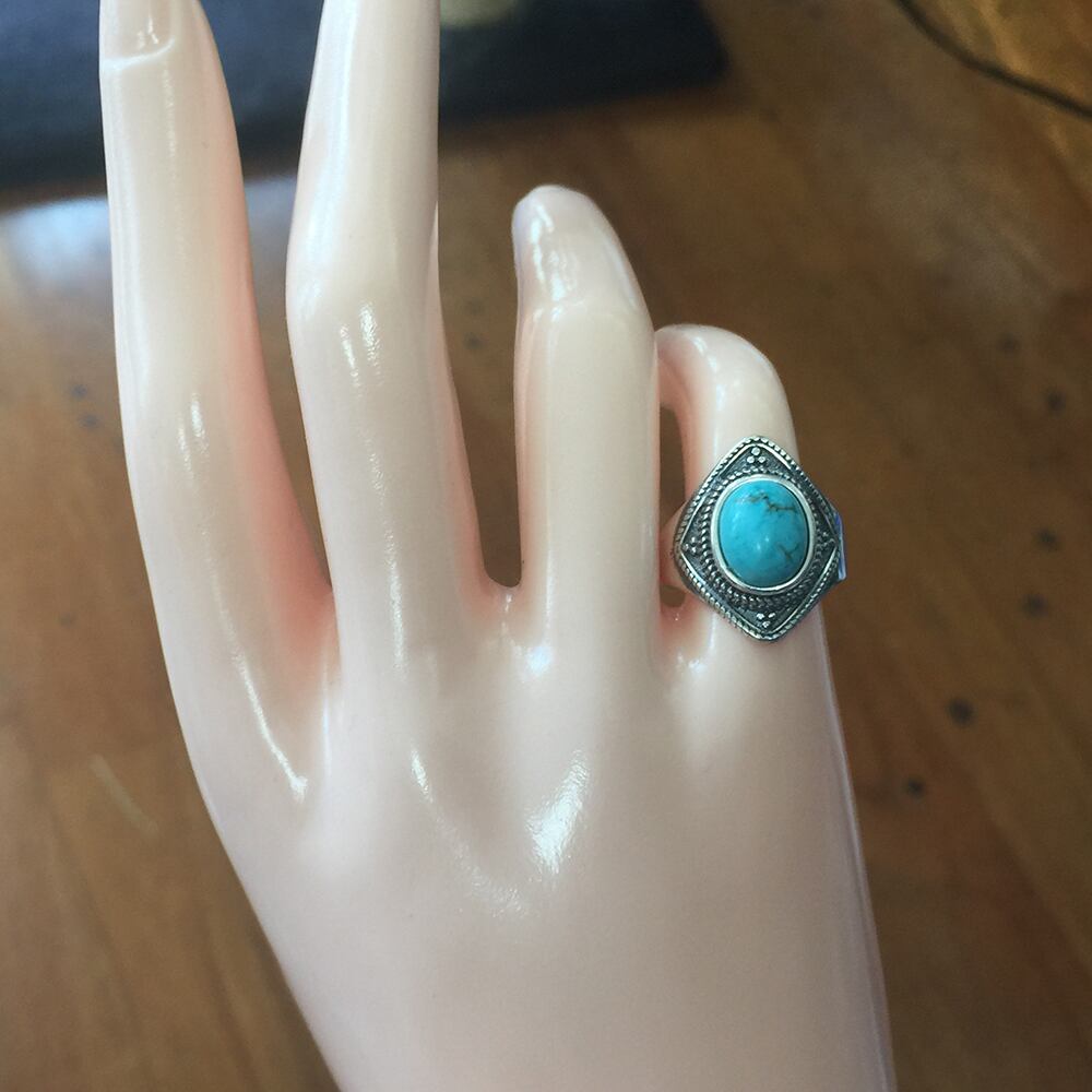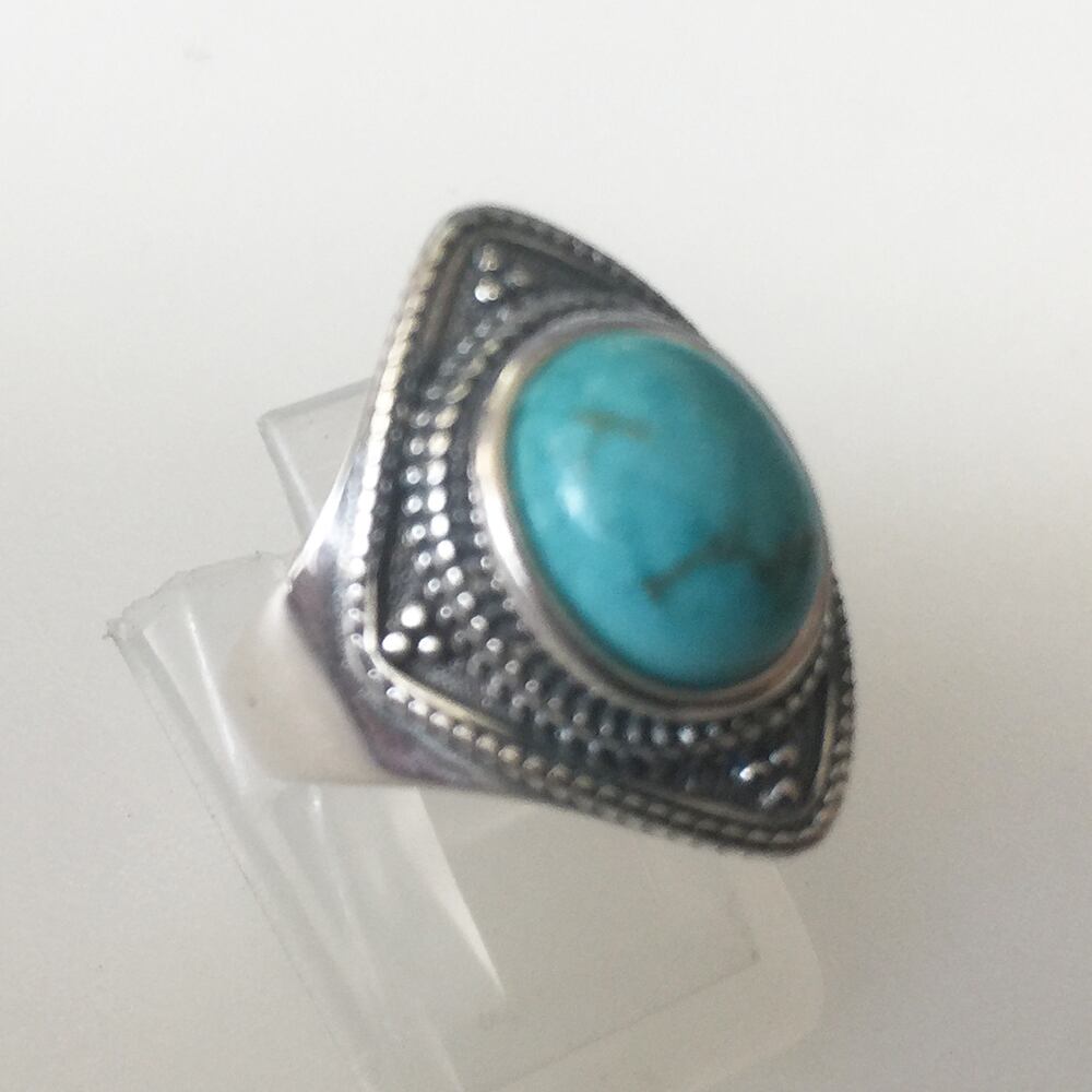 リング 指輪 ターコイズ レディース トルコ石 ネイティブ アンティーク シルバー 925 菱形 ヴィンテージ調 オーバル アクセサリー ジュエリー