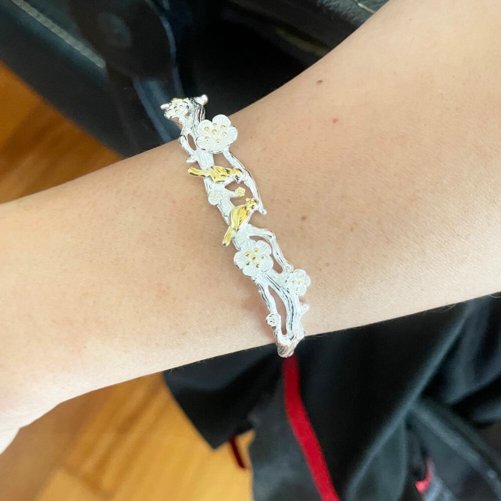 桜 シルバー バングル ブレス 桜の花 チェリーブロッサム レディース 腕輪