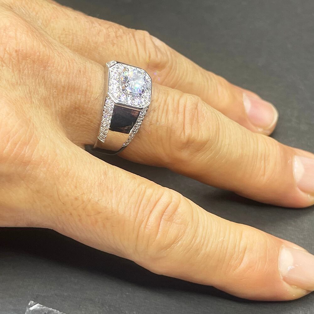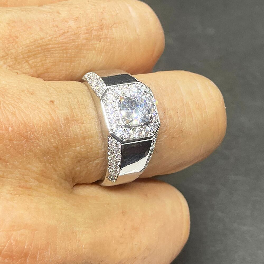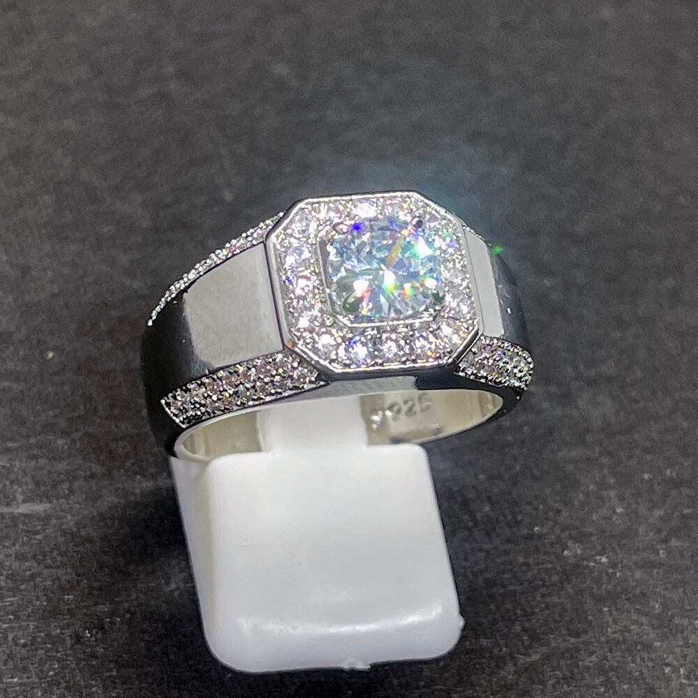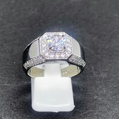 大きなキュービックジルコニアと両サイドのダブルラインのジルコニアが キラキラと 輝く シルバーリング
