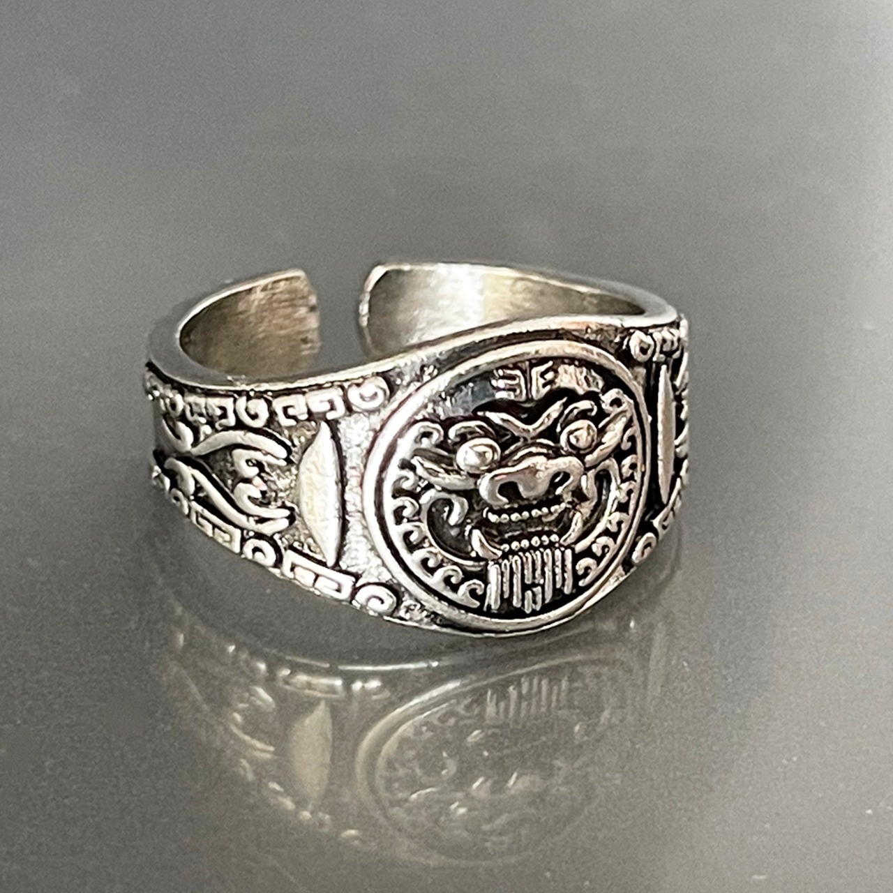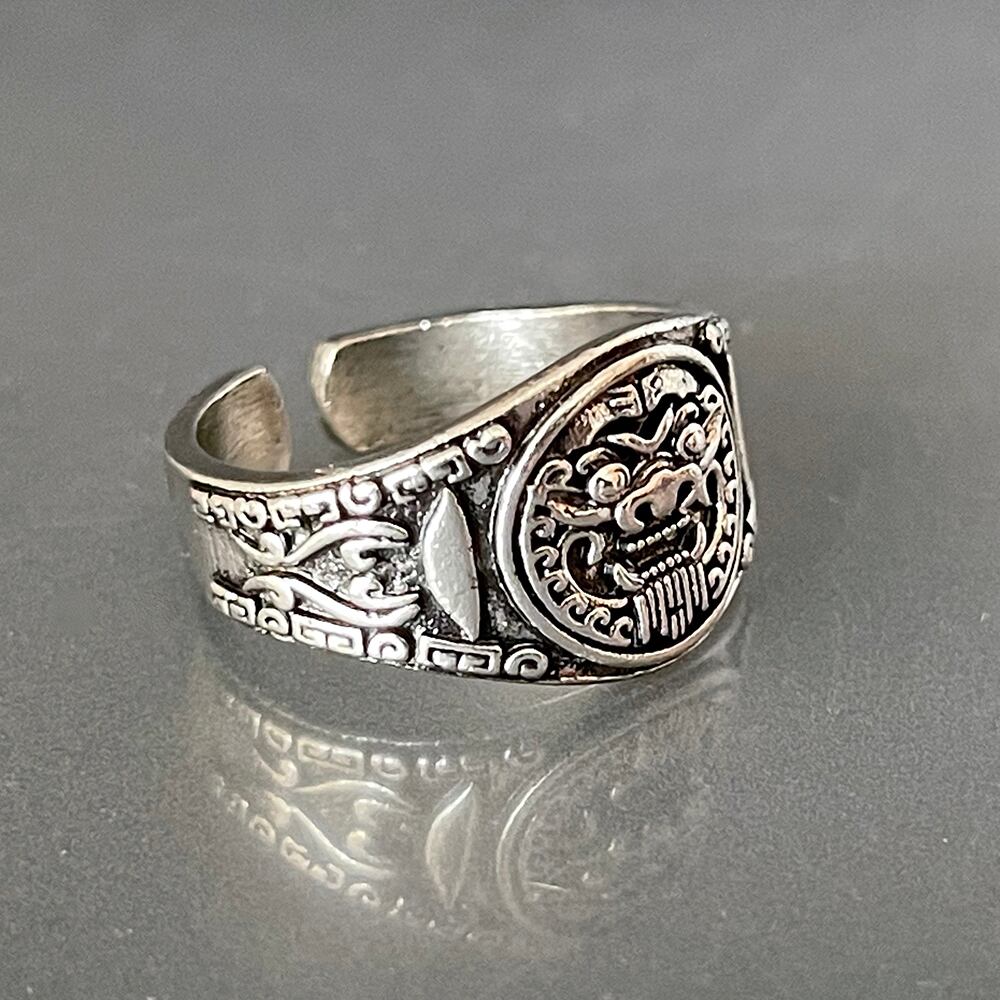 リング バロン 獅子 神獣 聖獣 魔除け お守り 疫病祓い 指輪 平打ち メンズ アクセサリー