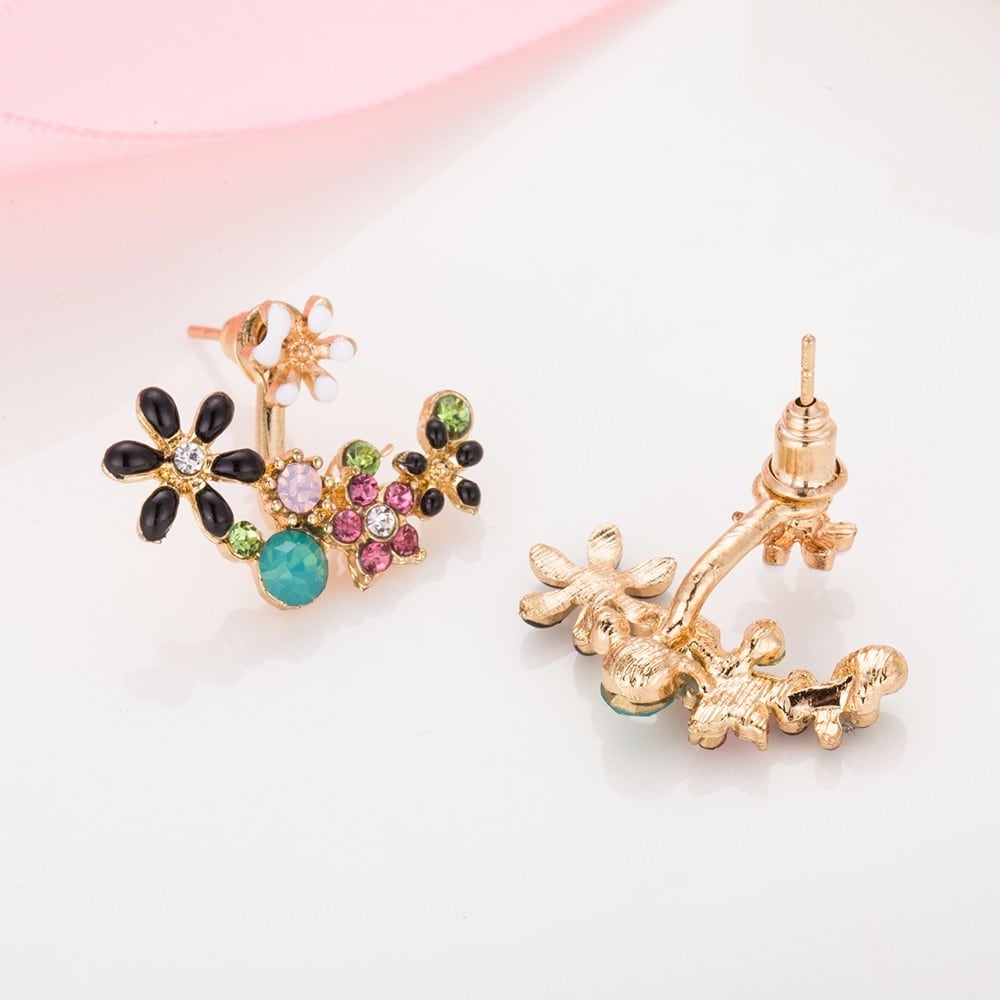 両耳用 ピアス カラー フラワー カラフル ブラック デイジー 花 クリスタル