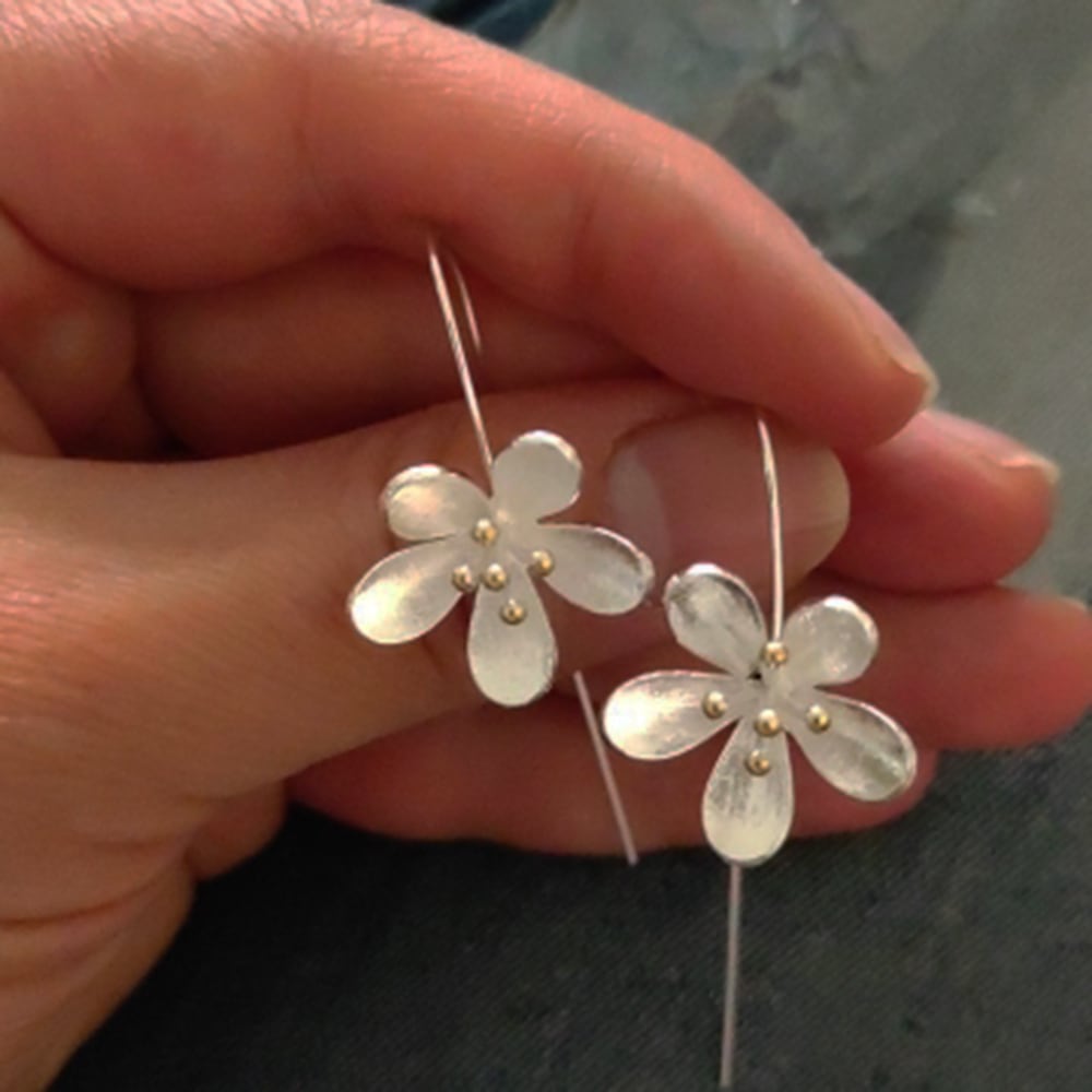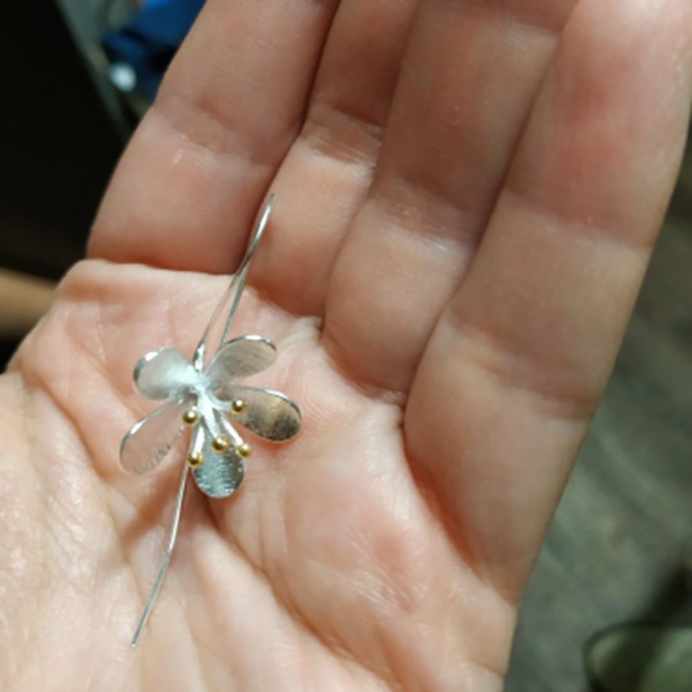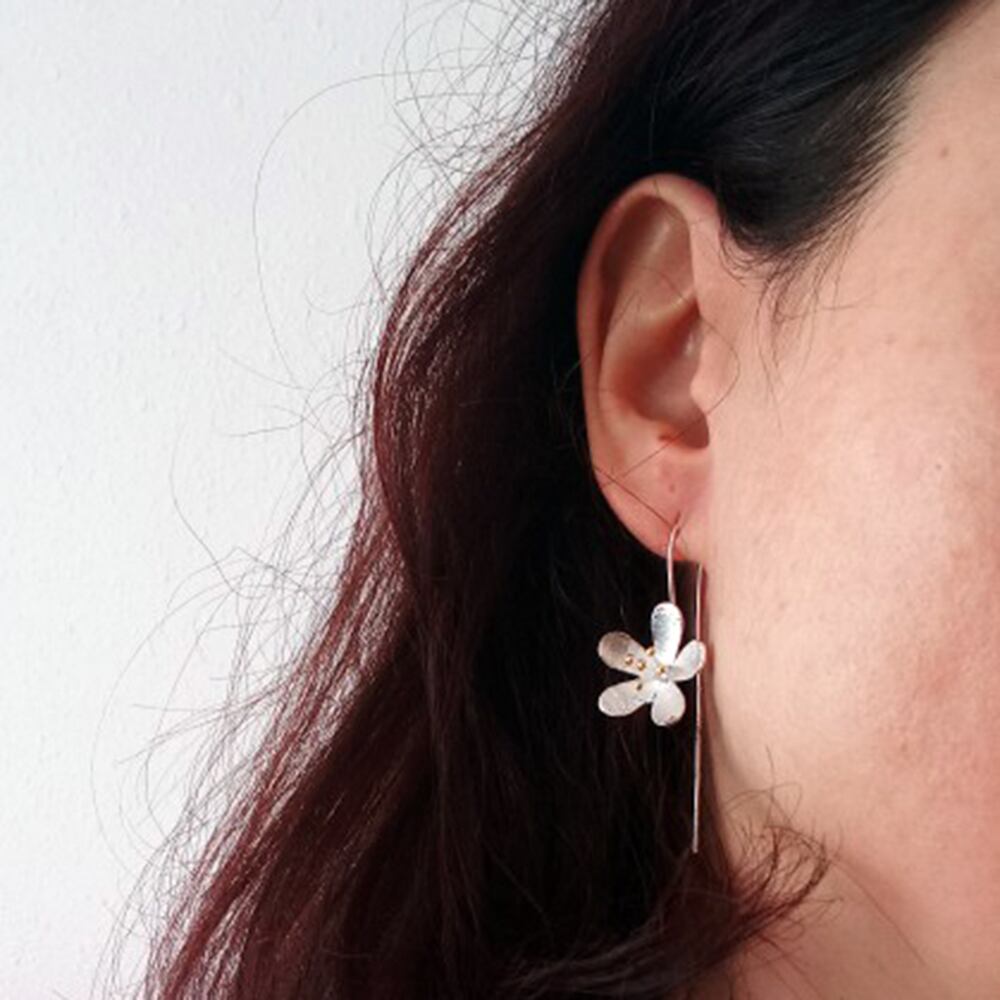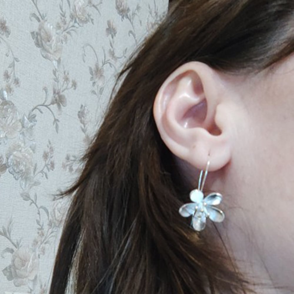 人気のある ロングタイプのシルバー蓮の花のピアス