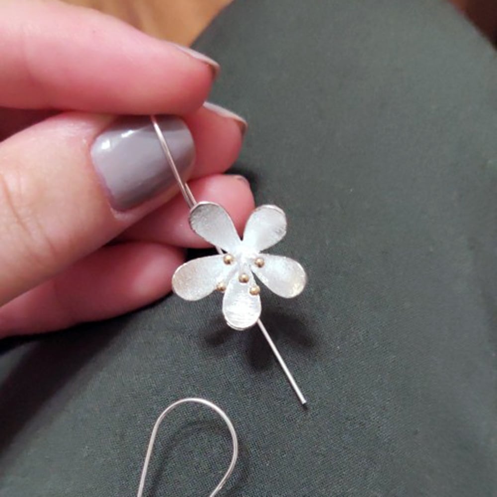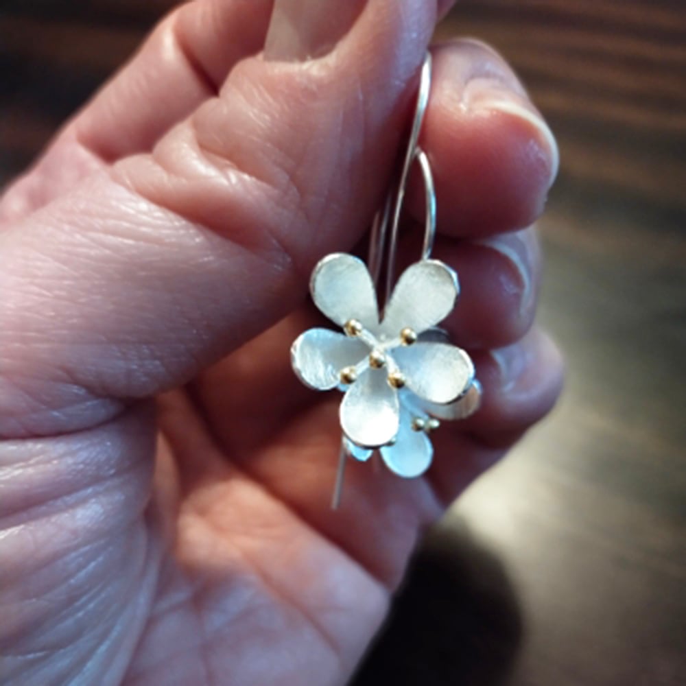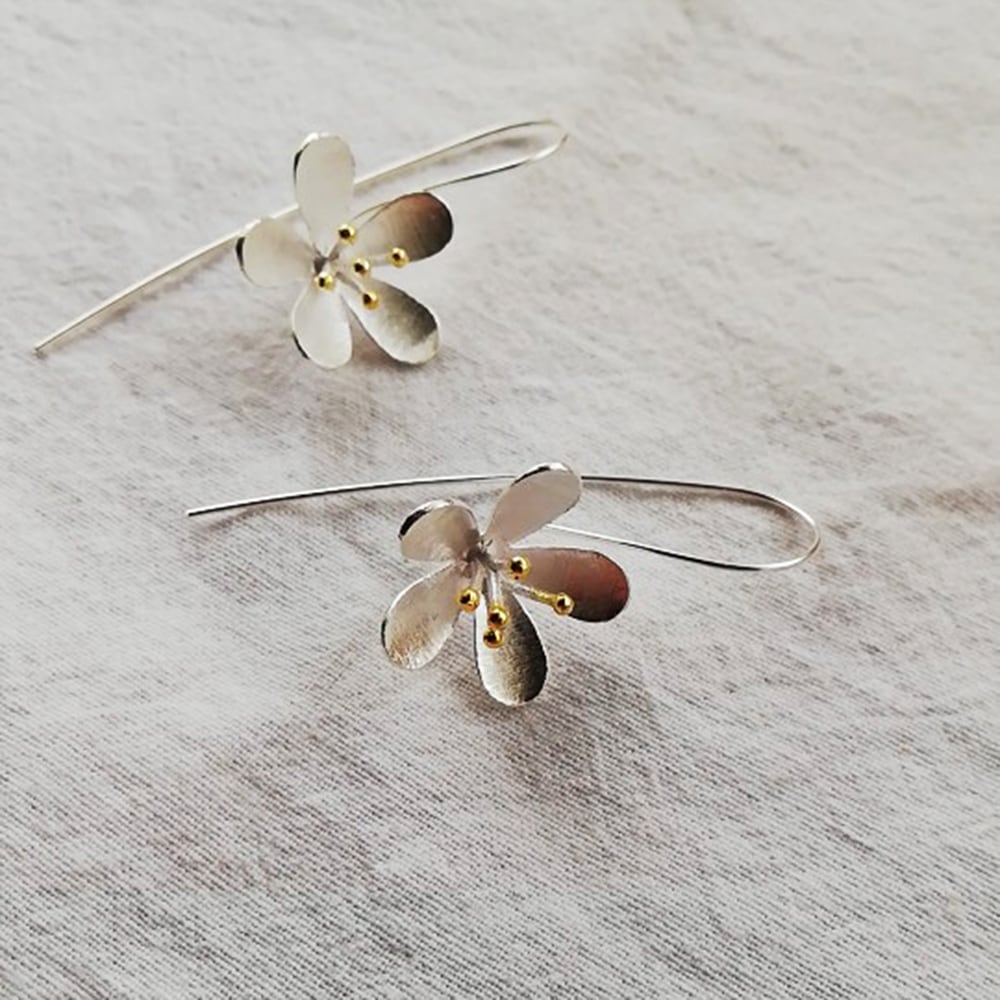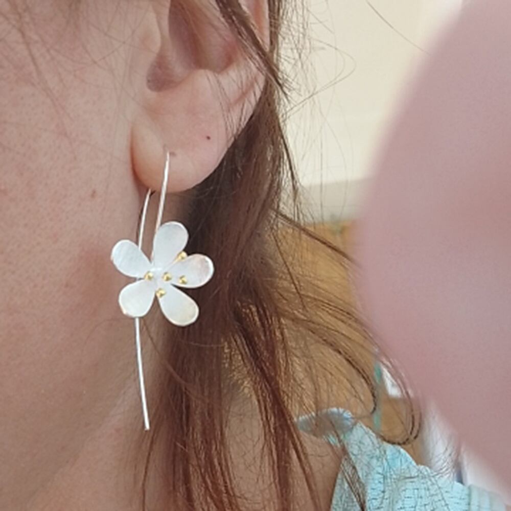 人気のある ロングタイプのシルバー蓮の花のピアス
