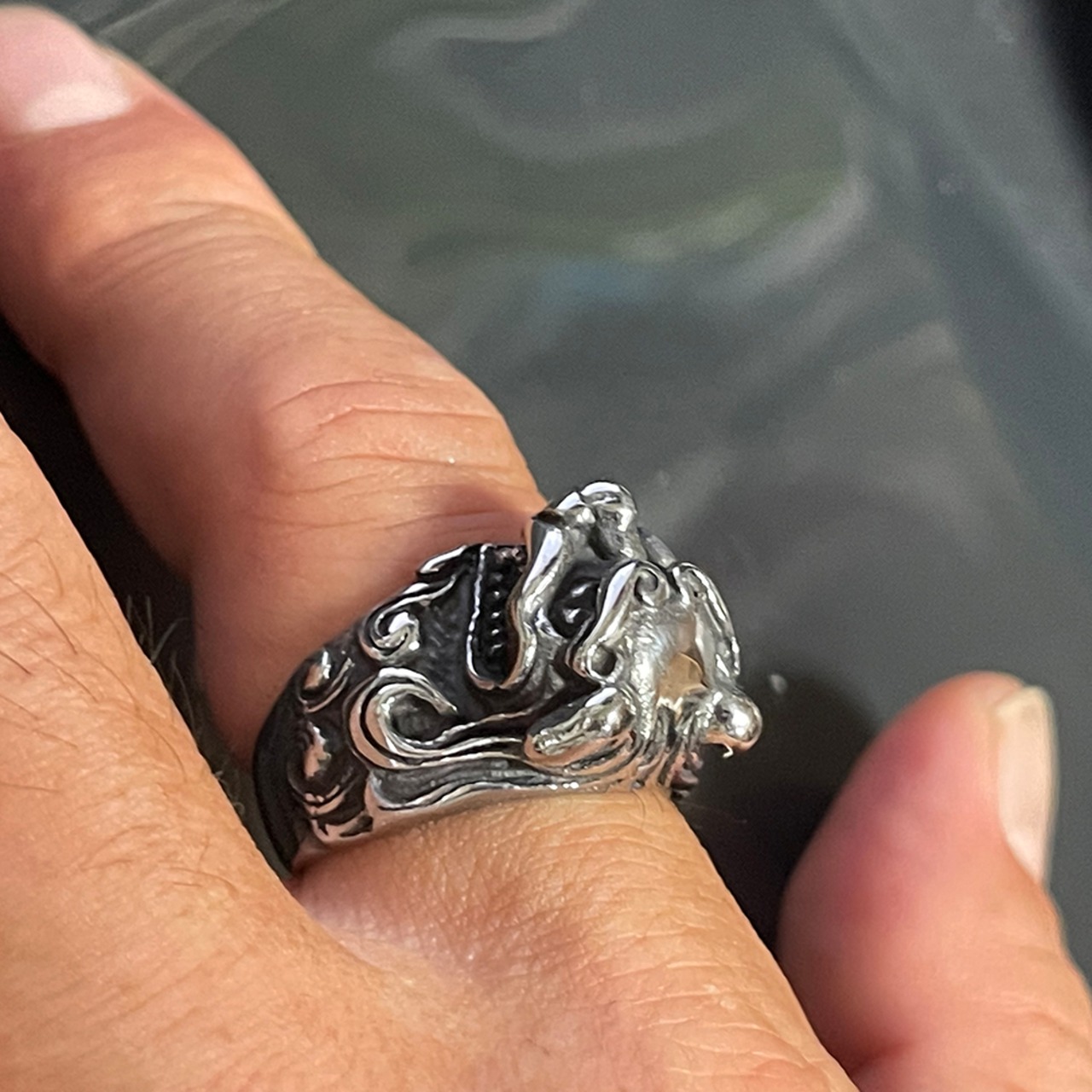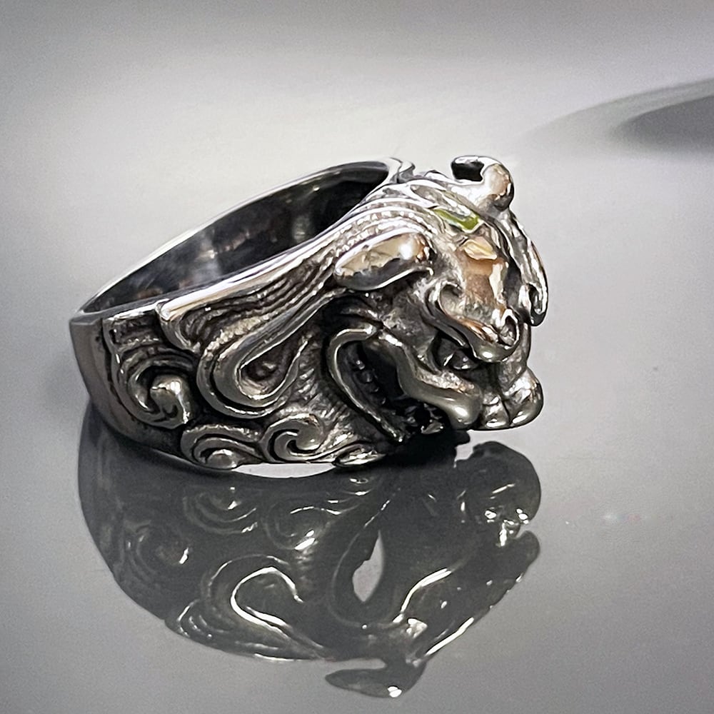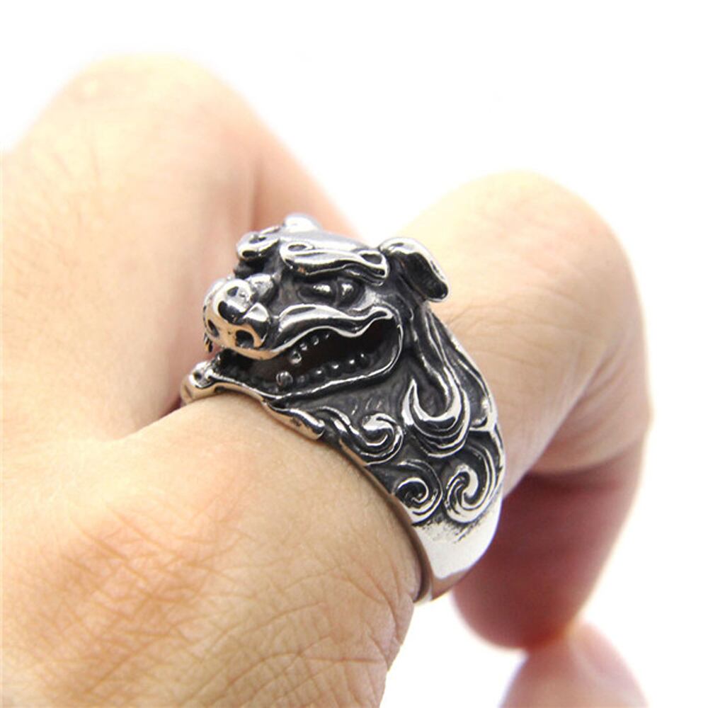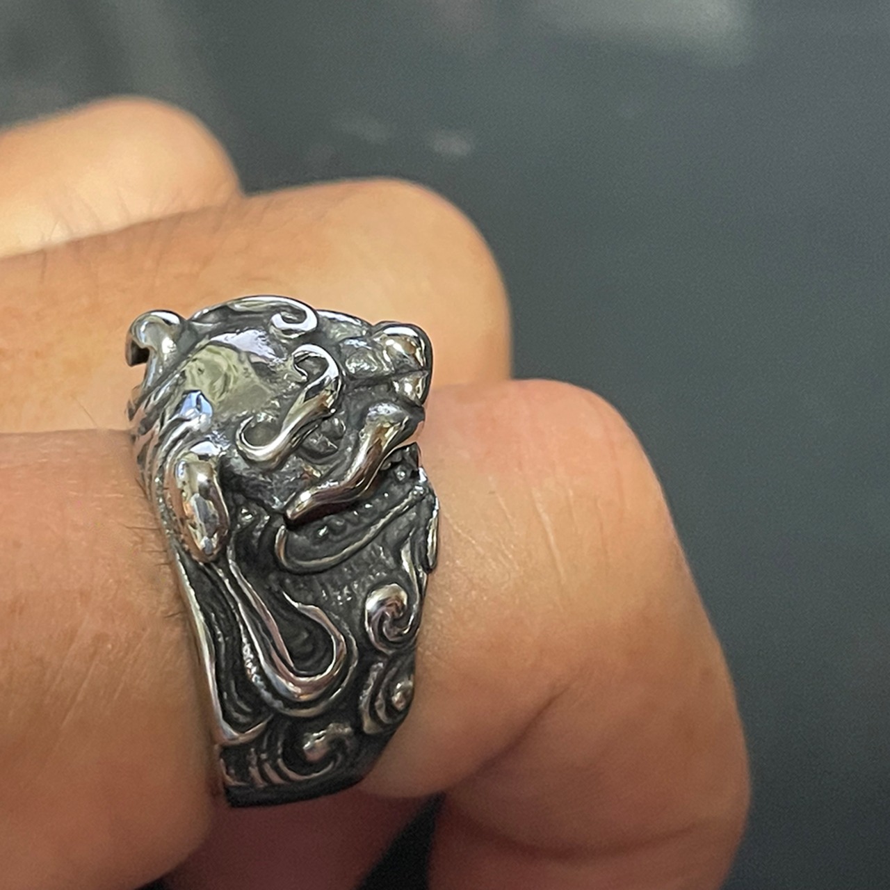リング 獅子 守護獣 狛犬 神獣 幸運 お守り メンズ 指輪 ステンレス アクセサリー シルバー アンティーク ヴィンテージ
