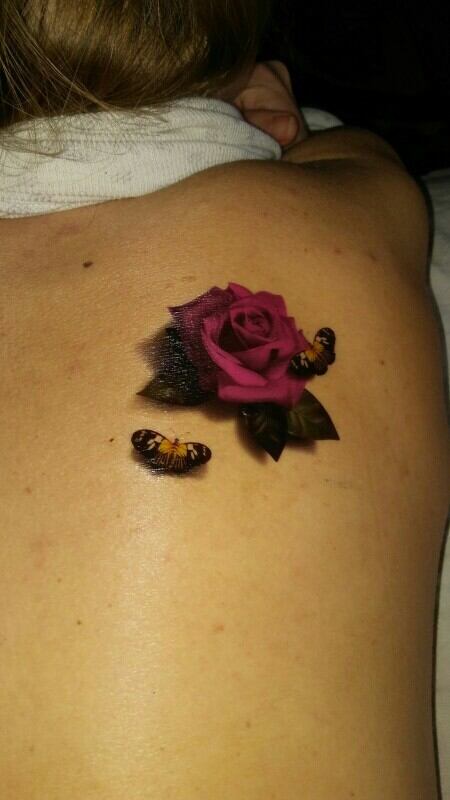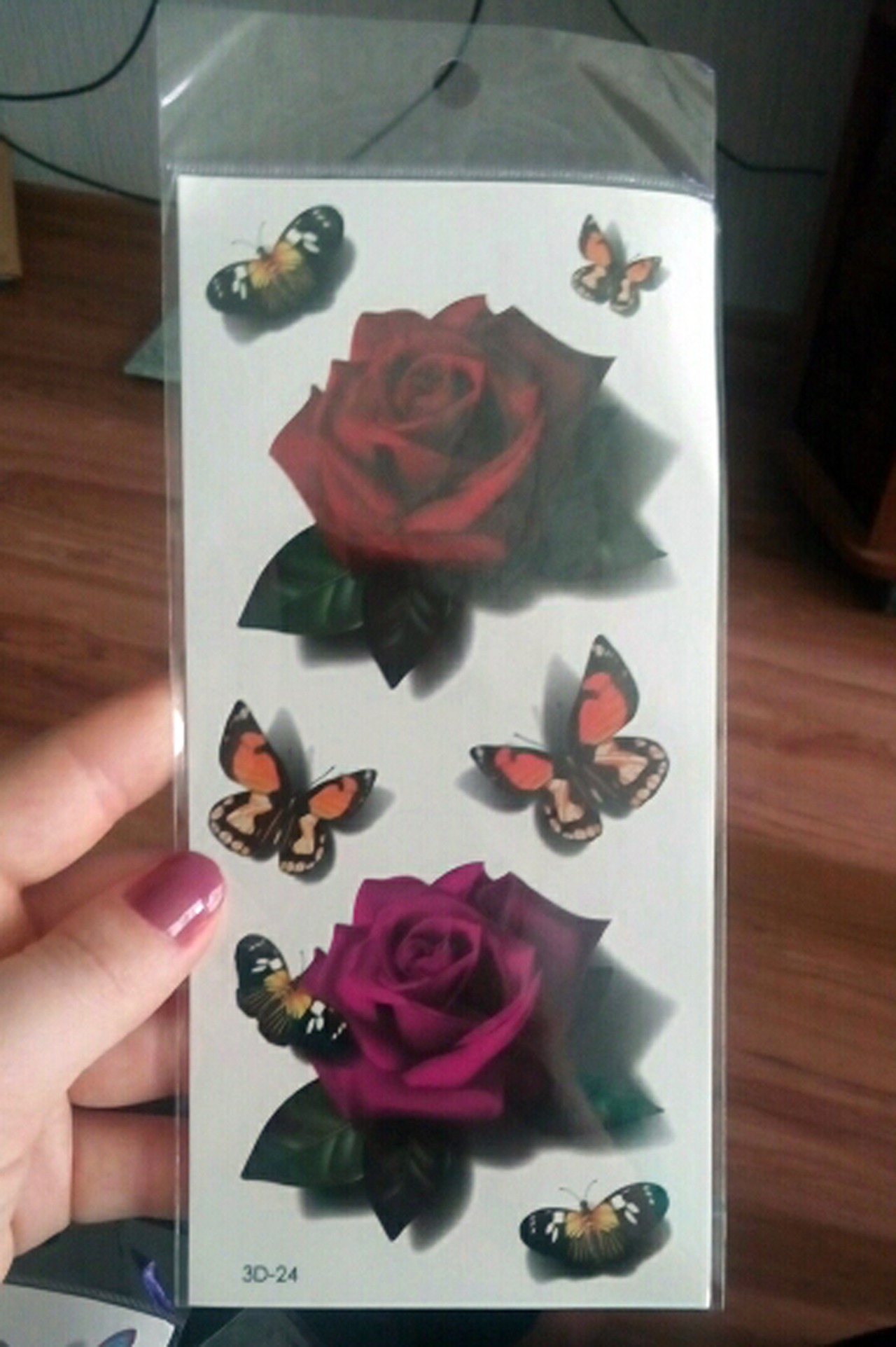 タトゥーシール 防水 3D 薔薇 バラ 花 ローズ バタフライ 蝶 オマケ付