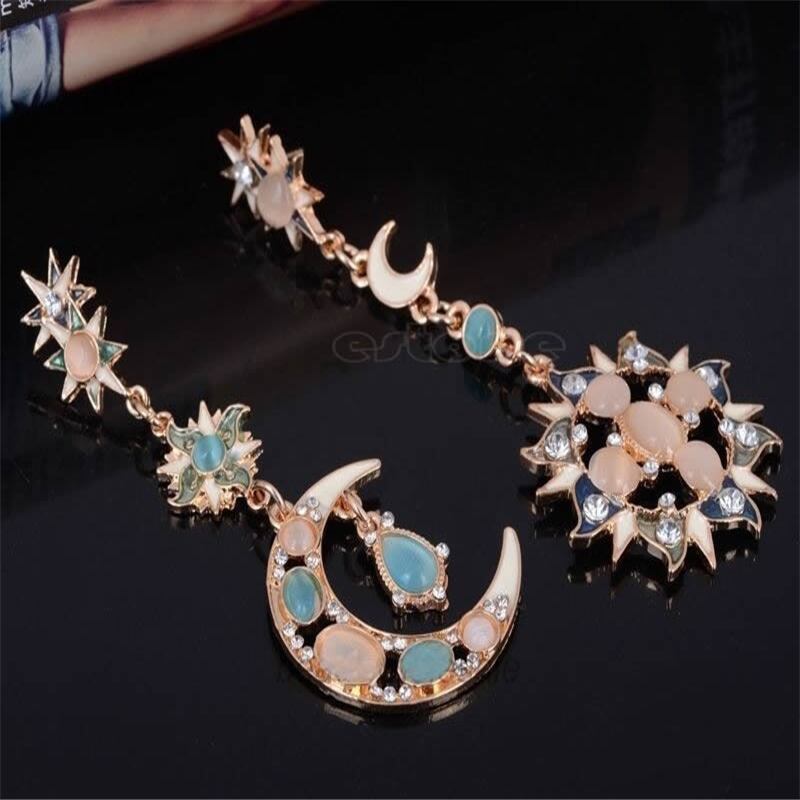 ピアス アクセサリー ジュエリー レディース 太陽 三日月 SUN MOON V系 モード系 ボヘミアン アンティーク ヴィンテージ ストーン オパール 空 夜 夜空 サン ムーン レトロ 結婚式 二次会 パーティ クラシック 個性的 アシンメトリー アシメ