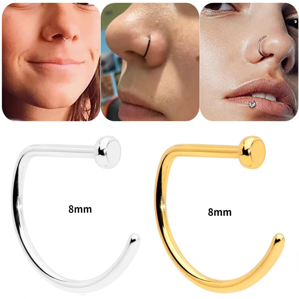 鼻ピアス 2個セット ボディピアス ピアス シルバー ゴールド D字型 鼻ピ フェイク フープ ノストリル ステンレス ノーズリング